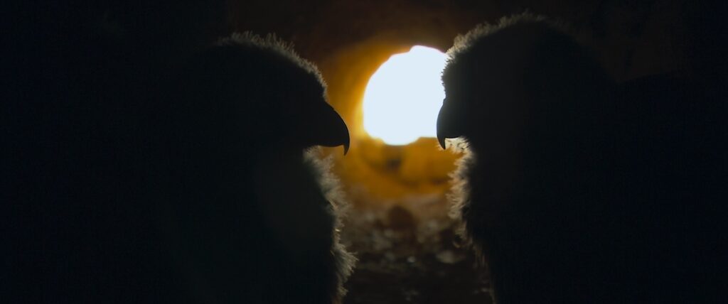 Estas condiciones de rodaje, unidas al trabajo paciente de observación desde los huecos de la torre y las murallas, explican la cercanía e intimidad de las tomas de la colonia urbana de cernícalo primilla que vemos en la película.