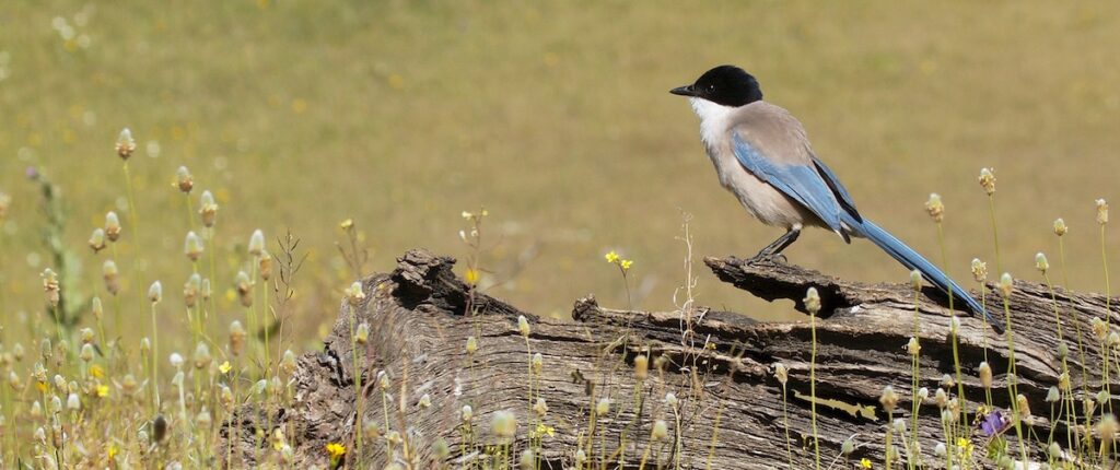 El auténtico emblema de esta comarca es el elanio azul (Elanus caeruleus): una pequeña rapaz de tonos grises y blancos, ojos rojos muy visibles y alas con manchas negras. Se caracteriza por su vuelo “a punto fijo”, manteniéndose suspendido en el aire batiendo las alas mientras inspecciona el terreno en busca de topillos, ratones o grandes insectos. Aprovecha el paisaje de cultivos con árboles aislados, como olivos y tarajes, que le sirven de posadero.